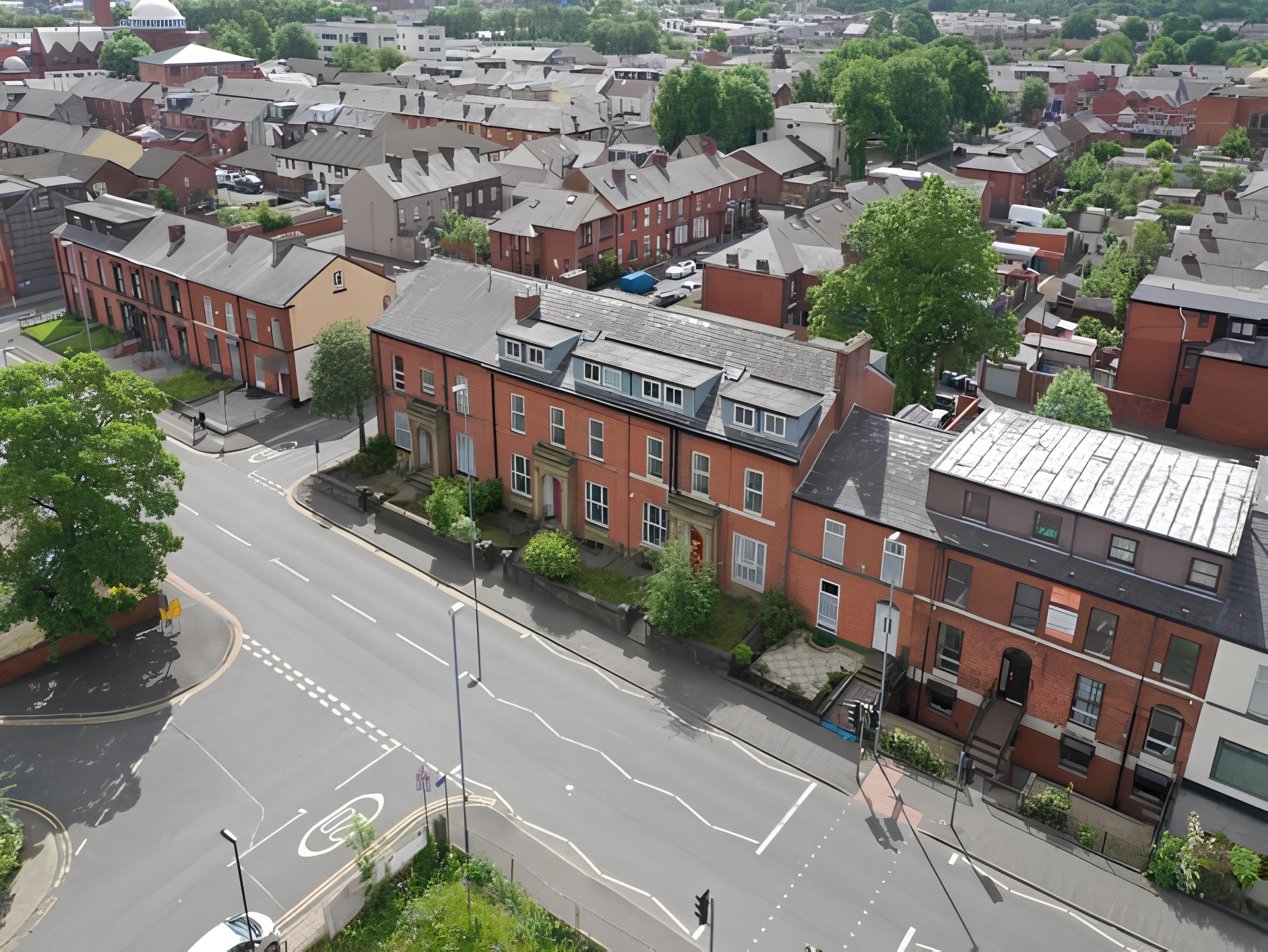 The site extends approximately 0.19 acres (769sqm) with a building GIA floorplate of circa. 690sqm over four storeys, comprising three floors above ground and a basement level. The main building can be accessed off Drake Street which connects to Rochdale Town Centre and the wider motorway network. The vacant land toward the back of the property is currently used as car parking and has space for approximately 10 cars. The land to the back of the property benefits from an additional access point off Norfolk Street which offers additional on-street parking.